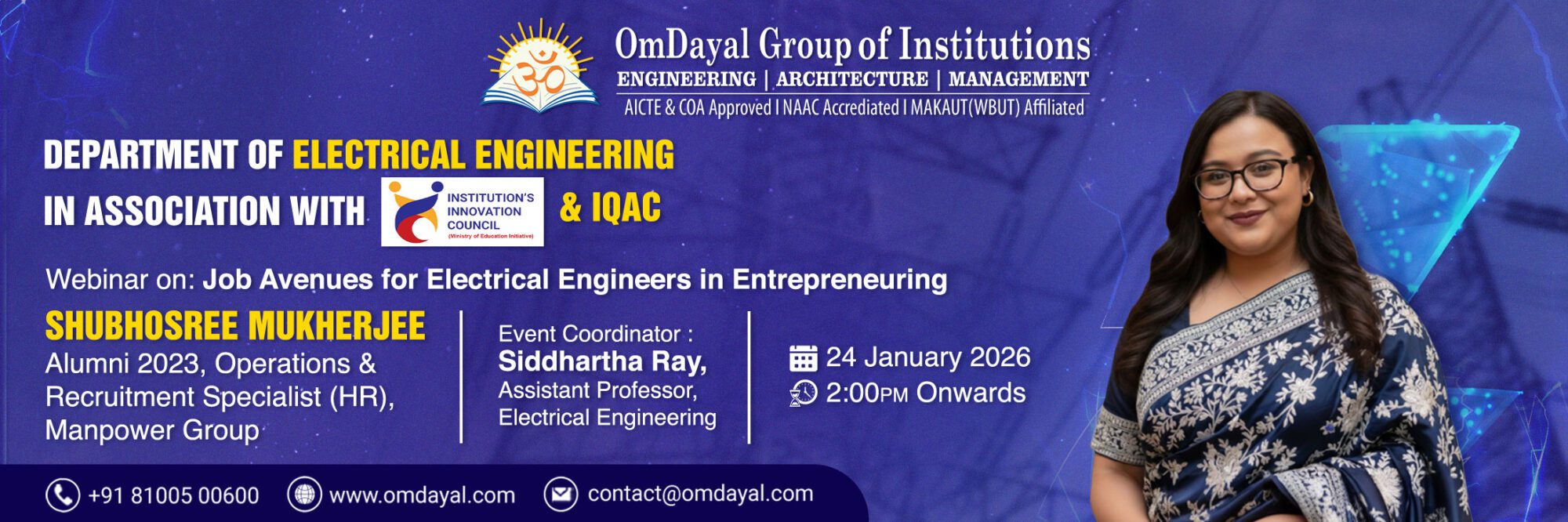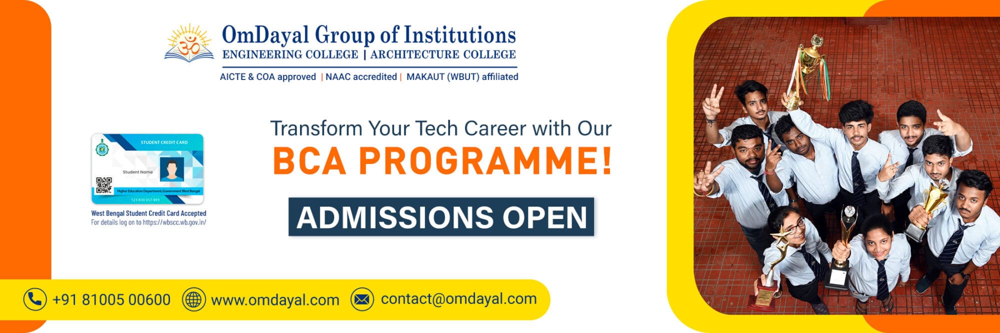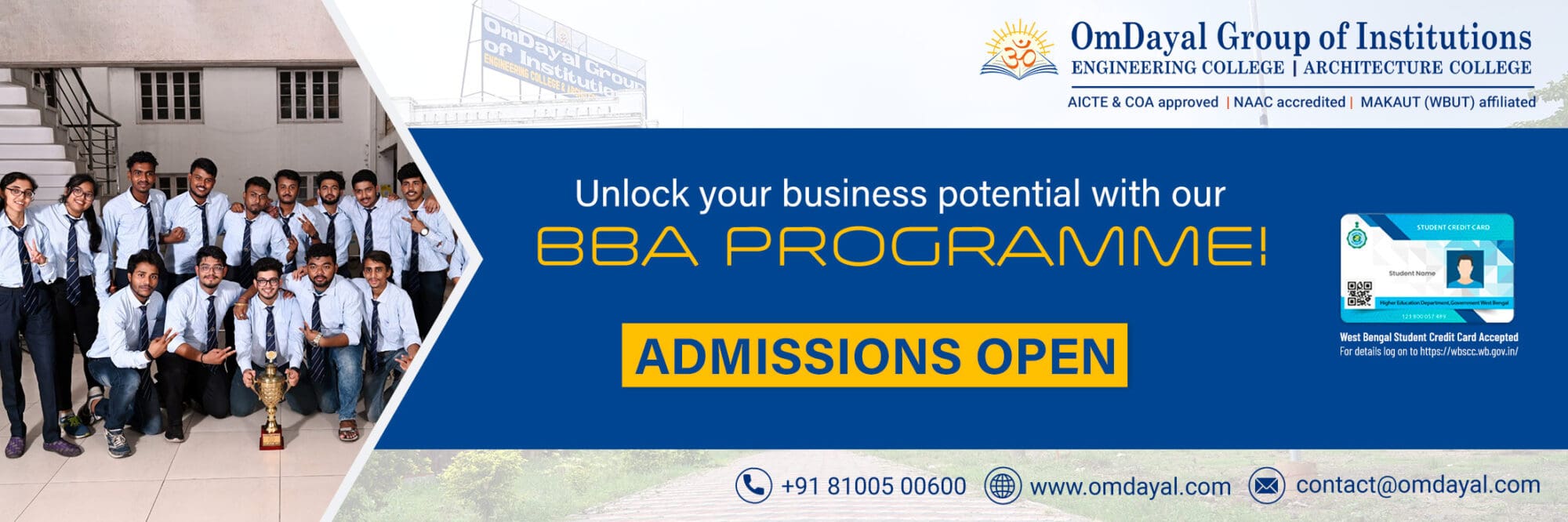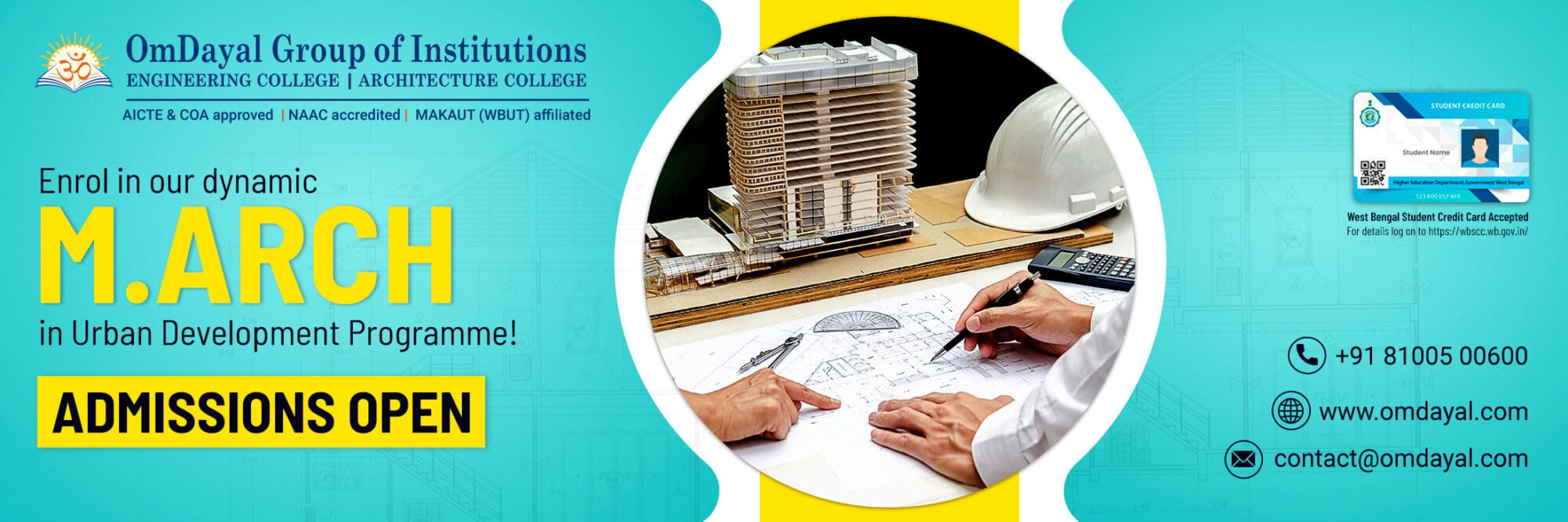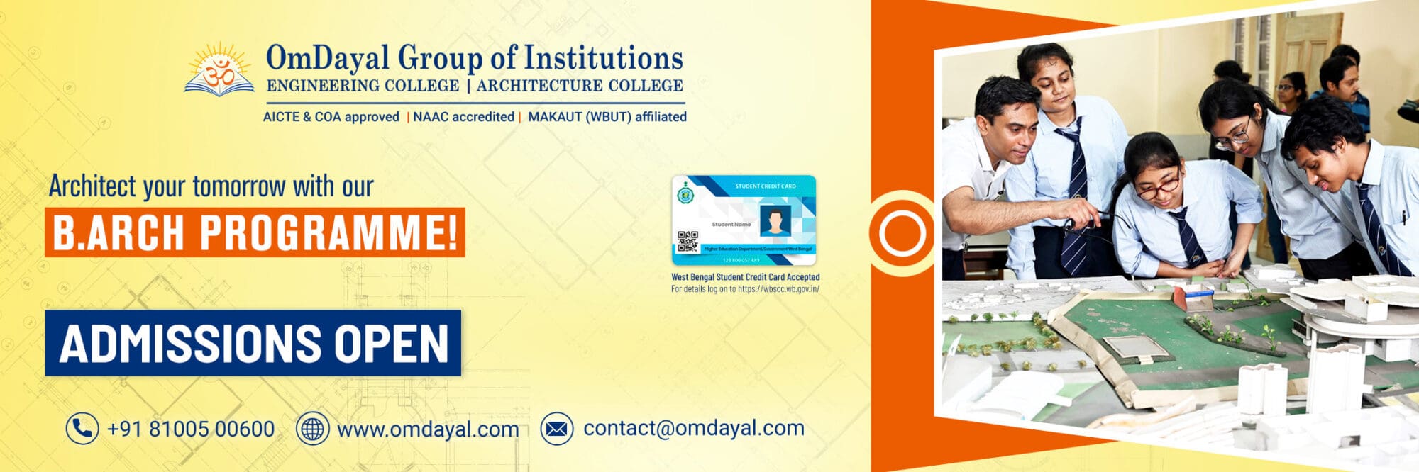As a NAAC accredited institution, the college offers engineering, architecture and management courses affiliated to Maulana Abul Kalam Azad University of Technology (MAKAUT), formerly known as WBUT. The Engineering, Management and Architecture courses are approved by AICTE and COA respectively to ensure that students are able to build a strong knowledge and application foundation with the guidance of experienced faculty and a robust learning environment. OmDayal Group of Institutions, one of the best engineering architecture and management college in Kolkata, continuously upgrades their teaching and learning practices to help students develop top-notch analytical, designing, communication, and problem-solving skills, as new age technology professionals.