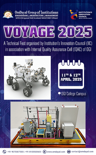 Event Details Voyage 2025 Organized by Institution’s Innovation Council (IIC) In Association with Internal Quality Assurance Cell (IQAC) Of OmDayal Group of Institutions. 11th & 12th April, 2025 OmDayal Group of Institutions, Uluberia Industrial Growth Centre, Howrah Creativity, Innovation and Research lie at the heart of every scientific invention. Inventions, propelled by imaginative ideation and […]