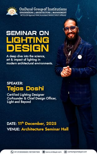 Date: 11th December, 2025 Venue: Architecture Seminar Hall Speaker : Tejas Doshi, Certified Lighting Designer, Co Founder & Chief Design Officer – Light and Beyond