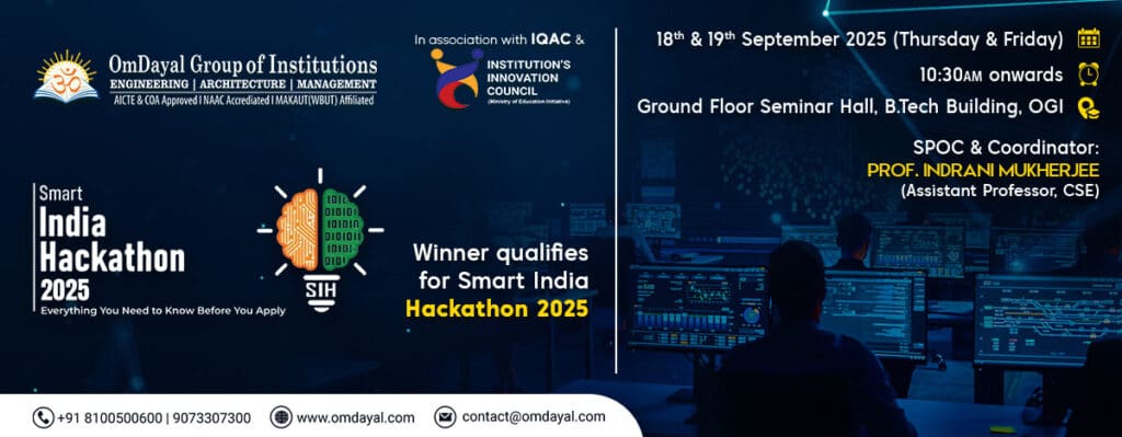 OmDayal Group of Institutions is organising a Internal Hackathon in collaboration with IIC. Winner will participate in the Smart India Hackathon 2025.